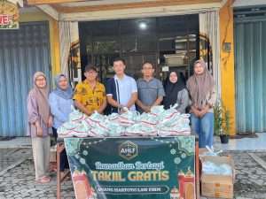 Dalam kegiatan ini, para staf dan keluarga besar kantor hukum tersebut turun langsung ke tepi jalan untuk membagikan paket takjil kepada pengendara yang melintas maupun warga sekitar yang tengah bersiap menyambut waktu berbuka puasa.