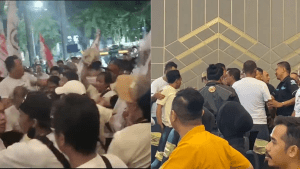 Disisi lain, situasi semakin memanas di dalam ruangan debat. Pendukung Paslon nomor 3 yang berada di dalam ruang debat terlihat tidak terima dan memprotes jalannya acara. Mereka merasa ada yang mengganggu jalannya debat, yang membuat suasana menjadi ricuh.