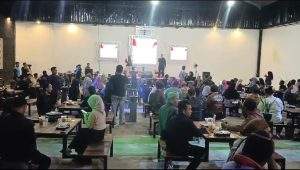 Nganjuk | Updatenewstv- Bertempat di Lumos Coffee and Pool, Jalan Gatot Subroto No. 1, Kauman, Nganjuk, calon Wakil Bupati Nganjuk nomor urut 1, Aushaf Fajr, menggelar seminar bertajuk “Gebrak” (Gerakan Bersama Rakyat Antar Kemenangan) Muhibbin – Aushaf bersama mahasiswa dan kalangan pemuda Nganjuk.