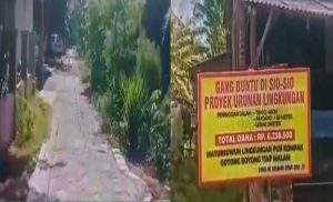 Sebagai bentuk transparansi, warga juga memasang papan pengumuman di lokasi pembangunan yang menyatakan bahwa proyek tersebut dibiayai sepenuhnya oleh iuran warga, bukan dari anggaran pemerintah. Papan tersebut bertuliskan: GANG BUNTU DI SIO-SIO, PROYEK URUNAN LINGKUNGAN PENINGGIAN JALAN, TINGGI 40CM, PANJANG 60 METER, LEBAR 2 METER, TOTAL DANA RP. 6.238.500. MATURSUWUN LINGKUNGAN PUN KOMPAK GOTONG ROYONG TIAP MALAM. “DANA NE URUNAN DEWE BRO..”