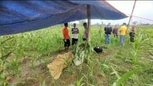 Nganjuk | Updatenewstv- Temuan mayat wanita paruh baya dengan kondisi kepala berdarah, Korban ditemukan tergeletak di kebun jagung saat mencari rumput di Desa Mungkung, Kecamatan Loceret, Kabupaten Nganjuk, Jatim , Sabtu (02/03/2024).