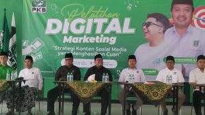 Nganjuk | Updatenewstv- Dewan Pimpinan Cabang (DPC) Partai Kebangkitan Bangsa (PKB) Kabupaten Nganjuk terus mendorong lahirnya generasi muda yang kreatif dan produktif di era digital. Salah satu langkah nyatanya adalah melalui kegiatan Pelatihan Digital Marketing bertema “Strategi Konten Sosial Media yang Menghasilkan Cuan” , yang digelar di Kantor DPC PKB Nganjuk, Sabtu (18/10/2025).