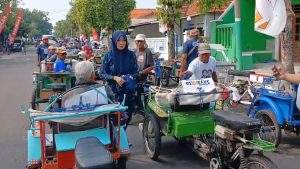 Di saat yang bersamaan, sekitar 500 tukang becak dan bentor (becak motor) turut meramaikan jalan-jalan utama Nganjuk. Mereka, yang merupakan bagian dari komunitas transportasi tradisional dan modern, berkumpul di Posko Pemenangan Bunda Ita-Mbak Zuli di Jalan Kartini.