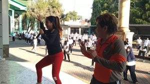 Acara dimulai pukul 06.30 WIB dan dipimpin oleh instruktur profesional dari Kediri Kota, bernama Yuli Mega didampingi rekannya.